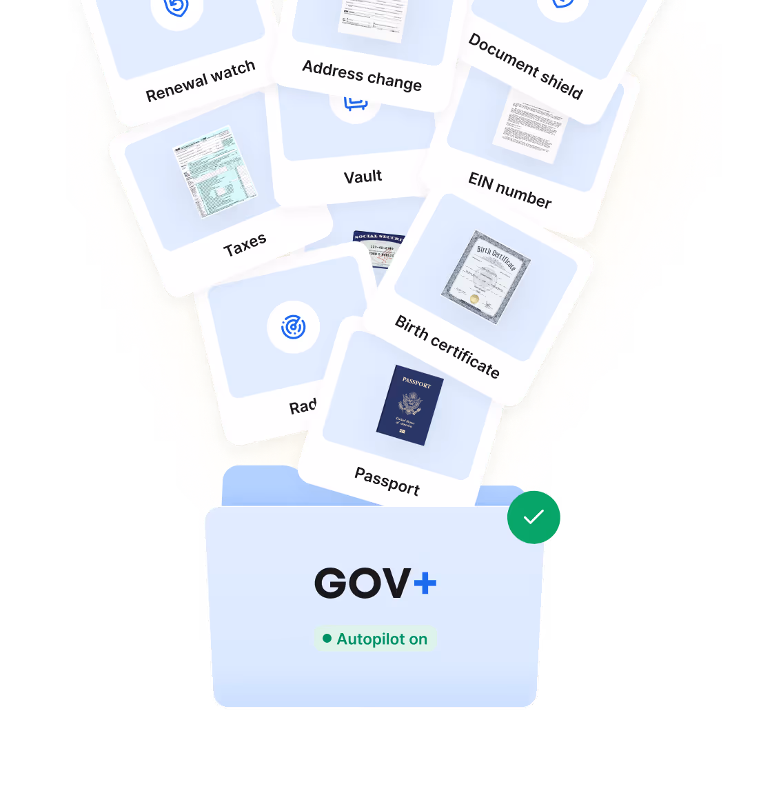 GOV+ runs your paperwork – filing, storing, renewing, and protecting it behind the scenes.